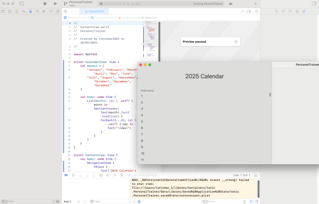 5 / nous proposons la demande suivant : create an ios app that is a agenda. it will display 2025 calendar with all months and days. Compile the ap