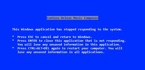 Il faut dire que Windows 3.0 comblait une lacune majeure de Windows 1.0, innovation qui n'a plus jamais quitté le système depuis, quelle qu'en soit la version, et que tous les utilisateurs connaissent bien : le fameux écran bleu de la mort ou BSOD (Blue Screen Of the Death) pour les intimes :-) Même si la fonctionnalité a évolué au fil du temps en fonction des besoins. Au départ, l'écran bleu servait à arrêter une simple application qui ne répondait plus. Petit à petit il est devenu l'emblème d'un plantage généralisé du système :-)