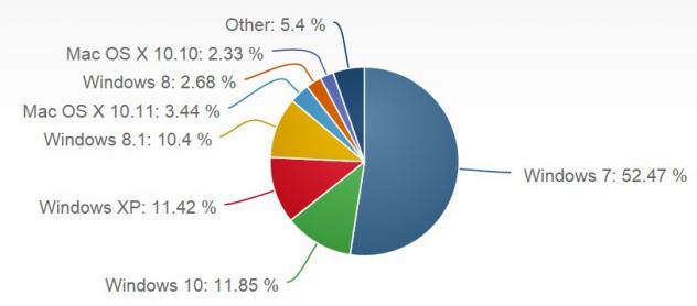 6 mois après son lancement le 29 juillet 2015 Windows arrive à 11,85% de parts de marché selon les statistiques mensuelles établies par NetMarketShare.