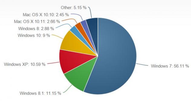 9% c'est peu et paradoxal. Windows 8.x a été mal reçu par la clientèle. Windows 10 arrive en fanfare pour le remplacer, et pour l'instant il ne le remplace pas...