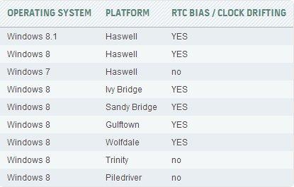 Selon HWBOT le problème ne se manifestement pas avec tous les processeurs. Voir le tableau ci-dessous. Il se produit sous Windows 8 et Windows 8.1, mais il n'est pas connu avec les versions antérieures de Windows.