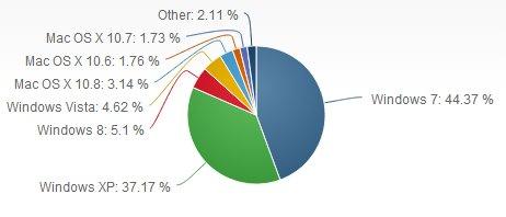 Le présence de Windows 8 sur le marché devrait s'accroître dans les mois qui viennent. En raison de la sortie de Windows 8.1 bien sûr, mais aussi en raison du déclin du très populaire Windows XP. En effet, Windows XP ne sera plus du tout supporté par Microsoft dès le 8 avril 2014. Particuliers et entreprises doivent trouver une l'alternative. C'est peut-être pour cette raison que d'une année sur l'autre Windows XP a déjà baissé de plus de 6 points. Windows 7 a quant à lui continué de gagner du terrain en prenant près de trois points de parts de marché.