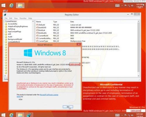 D'après ces sites, Microsoft travaille à un Windows 8.1 dont le noyau est estampillé 6.3.9600.16581.WINBLUES14_GDR_LEAN.13122 2-2030, alors que la version de production actuelle porte le numéro 6.3.9600.