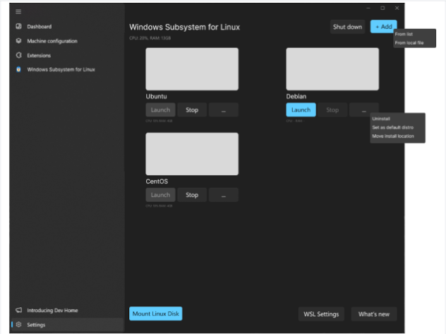 Mais pour le moment cette fonctionnalité est limitée au terminal Windows et Microsoft réalise que cela freine les utilisateurs qui ne sont pas familiers avec la ligne de commande. Pour remédier à cela, Microsoft envisage de créer une interface graphique pour gérer les distribution WSL.