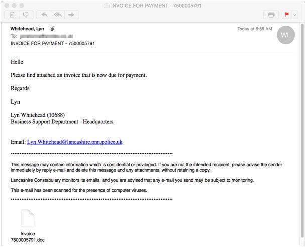 Figure 2 : Document de grande qualité utilisé en guise de leurre dans le cadre de la campagne Dridex 121 du 19 octobre