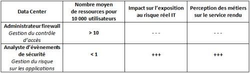 La réduction des coûts est immédiate. La surveillance du risque est permanente mais l’action de création de règle de contrôle applicatif n’intervient que si un risque est avéré. Les tâches automatiques et coûteuses liées à l’ouverture de routes disparaissent. Par ailleurs, les tâches nouvelles d’exploitant de sécurité sont beaucoup plus valorisantes pour les individus.