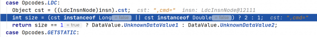Ici, size n'a pas encore été calculé, mais la DFA sait que comme cst n'est ni Long ni Double, size sera initialisé à 1, donc size == 1 est vrai sur la ligne suivante. Un autre exemple :