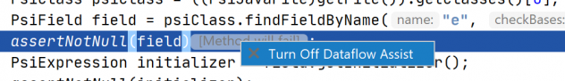 Java Dataflow Analysis (DFA) est capable de déduire des faits concernant votre programme : exceptions possibles, conditions toujours vraies/toujours fausses, et plus encore. Il effectue une interprétation abstraite du code source, ce qui lui permet de recueillir des informations sur l'exécution du code avant que celui-ci ne soit exécuté. Cependant, il ne sait presque rien des inputs apportés au code. Enfin, techniquement, si le paramètre de la méthode est annoté comme @NotNull, l'analyse se fie à cette annotation et suppose que null ne peut pas apparaître ici, mais ce n'est qu'une infime partie de l'information.