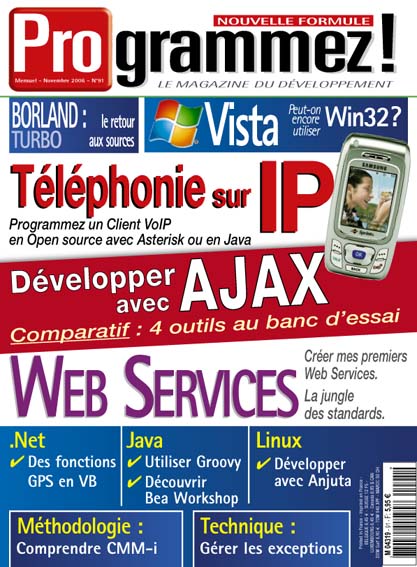 Dans programmez! PDF #91 Paru le 01/11/2006 S'ABONNER Evénements Borland fait renaître Turbo Lire la suite de Borland fait renaître Turbo IBM complète Rational v7 avec Caspian Lire la suite de IBM complète Rational v7 avec Caspian SGBD SGBDO, SGBDRO, SGBDR: l’objet au coeur de la donnée ? Lire la suite de SGBDO, SGBDRO, SGBDR: l’objet au coeur de la donnée ? Projets Le modèle CMM-i Lire la suite de Le modèle CMM-i Red Hat déploie Linux chez Lapeyre Lire la suite de Red Hat déploie Linux chez Lapeyre Gros plan VoIP, mettez de la voix dans vos applications Oui Lire la suite de VoIP, mettez de la voix dans vos applications Test Les outils pour le web 2 Lire la suite de Les outils pour le web 2 Dossier Windows Vista et .NET 3 (2e partie) Oui Lire la suite de Windows Vista et .NET 3 (2e partie) Web Services, comprendre et construire Lire la suite de Web Services, comprendre et construire Carrière L’EPSI : de la passion de l’informatique au diplôme d’ingénieur Lire la suite de L’EPSI : de la passion de l’informatique au diplôme d’ingénieur Technique Un plug-in Eclipse pour Team System Lire la suite de Un plug-in Eclipse pour Team System La gestion des exceptions Lire la suite de La gestion des exceptions Code WebLogic Workshop : l’usine à SOA Lire la suite de WebLogic Workshop : l’usine à SOA Développement Linux avec Anjuta et les bindings GTKmm et SDLtnet Oui Lire la suite de Développement Linux avec Anjuta et les bindings GTKmm et SDLtnet Utilisation d’un GPS en Visual Basic.Net pour Pocket PC Oui Lire la suite de Utilisation d’un GPS en Visual Basic.Net pour Pocket PC Développer un plug-in pour Netbeans 5.0 (2e partie) Oui Lire la suite de Développer un plug-in pour Netbeans 5.0 (2e partie) A la découverte de Groovy Lire la suite de A la découverte de Groovy
