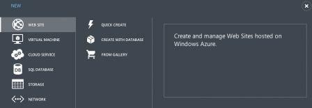 Le service sites web (web sites) est disponible directement dans le portail HTML5 de Windows Azure, rubrique Web Sites. Pour créer un nouveau service, très simple : New, clique sur Web Site.