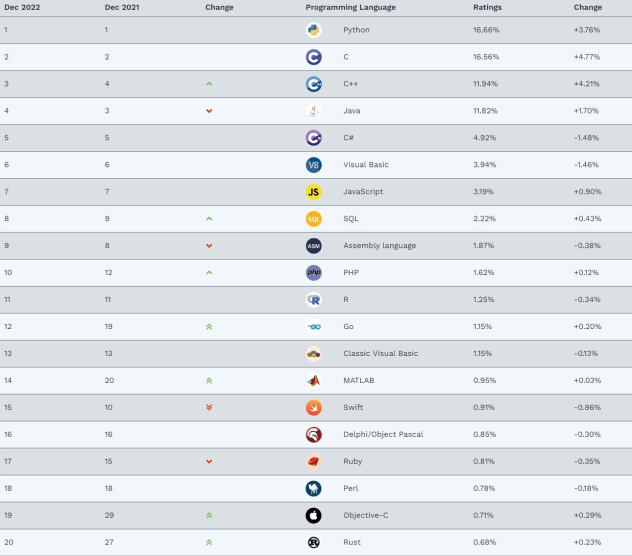 L'index TIOBE a été créé en 2001. Depuis cette date, Java avait toujours fait partie du Top 3 de cet index. Mais voici que dans l'index de décembre 2022 qui vient d'être publié, C++ dépasse Java, reléguant celui-ci à la 4ème place.