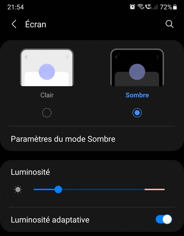 Avec le mode sombre et la luminosité adaptative, on est gagnant sur toute la ligne...