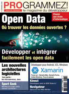 Dans programmez! papier #191 Paru le 30/11/2015 S'ABONNER Ecole Choisir son école d'informatique/de développement Lire la suite de Choisir son école d'informatique/de développement Ecole, diplôme, travail Lire la suite de Ecole, diplôme, travail De l'école à l'entreprise Lire la suite de De l'école à l'entreprise Chronique Les bénéfices de l'inner sourcing pour l'entreprise Lire la suite de Les bénéfices de l'inner sourcing pour l'entreprise Je débute avec Je pratique le C++ Partie 5/5 1 Lire la suite de Je pratique le C++ Partie 5/5 Xamarin L’univers Xamarin Lire la suite de L’univers Xamarin Démarrer avec Xamarin Lire la suite de Démarrer avec Xamarin Développer des applications en C# sur Mac avec Xamarin.Mac Lire la suite de Développer des applications en C# sur Mac avec Xamarin.Mac Trucs et Astuces Lire la suite de Trucs et Astuces Intégrer Azure Active Directory dans votre application Xamarin Lire la suite de Intégrer Azure Active Directory dans votre application Xamarin Open Data Qu’est-ce que l’Open Data et comment l’utiliser ? 1 Lire la suite de Qu’est-ce que l’Open Data et comment l’utiliser ? Comment consommer des données OpenData depuis une App Windows (Phone) 10 1 Lire la suite de Comment consommer des données OpenData depuis une App Windows (Phone) 10 Visualisation cartographique de données ouvertes avec D3 1 Lire la suite de Visualisation cartographique de données ouvertes avec D3 Android Les tests Android démystifiés 2e partie Lire la suite de Les tests Android démystifiés 2e partie iOS iOS 9, Swift 2, qu’est-ce qui a changé ? Lire la suite de iOS 9, Swift 2, qu’est-ce qui a changé ? Architecture Les nouvelles architectures logicielles 1ère partie Lire la suite de Les nouvelles architectures logicielles 1ère partie L’art de l’architecture en Java Lire la suite de L’art de l’architecture en Java Mission : maker Connectez votre rameur d’appartement avec Chrome 1ère partie 1 Lire la suite de Connectez votre rameur d’appartement avec Chrome 1ère partie Maps Prenez vos repères avec Google Maps API V3 1 Lire la suite de Prenez vos repères avec Google Maps API V3 Node.js Node.js de A à Z 3e partie Lire la suite de Node.js de A à Z 3e partie Webmaker Les outils Webmaker de Mozilla Lire la suite de Les outils Webmaker de Mozilla Navigateur Web Workers : le multithread débarque dans le navigateur ! 1 Lire la suite de Web Workers : le multithread débarque dans le navigateur ! Roslyn Essayez le compilateur Microsoft Roslyn en ligne Lire la suite de Essayez le compilateur Microsoft Roslyn en ligne Framework MEAN.IO (3/4) Lire la suite de MEAN.IO (3/4) Amazon Créez des objets connectés avec le Cloud AWS ! Lire la suite de Créez des objets connectés avec le Cloud AWS ! PHP Insight : le contrôle qualité automatisé de vos projets PHP Lire la suite de Insight : le contrôle qualité automatisé de vos projets PHP Kinect Développer avec le SDK Kinect 2 1ère partie 1 Lire la suite de Développer avec le SDK Kinect 2 1ère partie