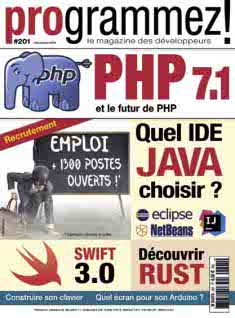 Dans programmez! papier #201 Paru le 29/10/2016 S'ABONNER PHP PHP 7 : un an après Lire la suite de PHP 7 : un an après IDE Eclipse versus NetBeans versus IntelliJ : quel IDE Java choisir ? Lire la suite de Eclipse versus NetBeans versus IntelliJ : quel IDE Java choisir ? Matériel Les joies des écrans avec Arduino Lire la suite de Les joies des écrans avec Arduino Startup CTO Partners, le premier fonds d'investissement des CTO et managers IT français Lire la suite de CTO Partners, le premier fonds d'investissement des CTO et managers IT français Recrutement Recrutement : du choix, mais pas pour tous les profils Lire la suite de Recrutement : du choix, mais pas pour tous les profils Quand un OPS change de job Lire la suite de Quand un OPS change de job Drupal Retours d’expérience après un an d’utilisation de Drupal 8 Lire la suite de Retours d’expérience après un an d’utilisation de Drupal 8 Créer des sites Internet responsive avec Drupal et Zurb Foundation 1ère partie Lire la suite de Créer des sites Internet responsive avec Drupal et Zurb Foundation 1ère partie Unity Les dernières nouveautés d’Unity ! Lire la suite de Les dernières nouveautés d’Unity ! Swift Swift 3.0 est là Lire la suite de Swift 3.0 est là Apple watch watchOS 3 : les nouveautés Lire la suite de watchOS 3 : les nouveautés Azure Etendre VSTS avec les extensions 2e Partie 1 Lire la suite de Etendre VSTS avec les extensions 2e Partie Android Découverte du Data Binding sous Android 1 Lire la suite de Découverte du Data Binding sous Android Rust Introduction à Rust Lire la suite de Introduction à Rust Web Introduction au Web Scraping Lire la suite de Introduction au Web Scraping GitHub Une application Electron pour suivre un repository GitHub 2e partie 1 Lire la suite de Une application Electron pour suivre un repository GitHub 2e partie Data Modélisation des données 1ere partie : SMART Model et génération de code pour une base de données relationnelle Lire la suite de Modélisation des données 1ere partie : SMART Model et génération de code pour une base de données relationnelle Xamarin Comment assurer une belle vie à votre application mobile ! (Partie 4) Lire la suite de Comment assurer une belle vie à votre application mobile ! (Partie 4) Xamarin : mon premier jeu Cross Platform avec CocosSharp 2e partie 1 Lire la suite de Xamarin : mon premier jeu Cross Platform avec CocosSharp 2e partie Constellation Contrôler votre Constellation depuis votre montre Gear S2 Partie 3 Lire la suite de Contrôler votre Constellation depuis votre montre Gear S2 Partie 3 Python Forensic en Python 1 Lire la suite de Forensic en Python