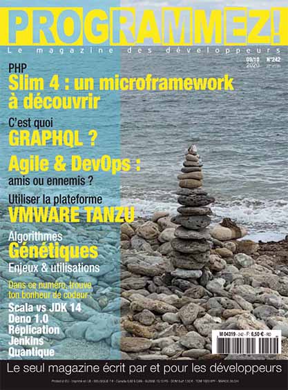 Dans programmez! papier #242 Paru le 04/09/2020 S'ABONNER Roadmap Roadmap des langages Lire la suite de Roadmap des langages Outils Deno 1.0 le node.js killer (!?) Lire la suite de Deno 1.0 le node.js killer (!?) Formation Epitech : des fondamentaux aux projets concrets Lire la suite de Epitech : des fondamentaux aux projets concrets Quantique Informatique quantique et finance Lire la suite de Informatique quantique et finance DevOps De l’agilité au DevOps : retour sur leurs origines Lire la suite de De l’agilité au DevOps : retour sur leurs origines Conteneur Kubernetes as a Service avec VMware Tanzu Kubernetes Grid Lire la suite de Kubernetes as a Service avec VMware Tanzu Kubernetes Grid Framework À la découverte de Slim 4 1 Lire la suite de À la découverte de Slim 4 Graph GraphQL : promesse magique ou nuage de fumée ? 1 Lire la suite de GraphQL : promesse magique ou nuage de fumée ? .NET gRPC-web avec ASP.NET Core 3.1 et Angular 9 : comment ça marche ? 1 Lire la suite de gRPC-web avec ASP.NET Core 3.1 et Angular 9 : comment ça marche ? Oracle Transparent Application Continuity (TAC) : comment une application peut ne perdre aucune transaction avec une base Oracle ? Lire la suite de Transparent Application Continuity (TAC) : comment une application peut ne perdre aucune transaction avec une base Oracle ? Langage Programmation fonctionnelle : plus simple qu'on ne le pense Lire la suite de Programmation fonctionnelle : plus simple qu'on ne le pense Scala : le dossier in a nutshell en comparaison à la JDK 14 1 Lire la suite de Scala : le dossier in a nutshell en comparaison à la JDK 14 Jenkins Pipeline as code avec Jenkins 1 Lire la suite de Pipeline as code avec Jenkins SGDB La réplication physique avec PostgreSQL en pratique Lire la suite de La réplication physique avec PostgreSQL en pratique Course Courses virtuelles de voitures autonomes sur simulateur ! 1 Lire la suite de Courses virtuelles de voitures autonomes sur simulateur ! Recherche Algorithmes génétiques pour clusteriser un nuage Lire la suite de Algorithmes génétiques pour clusteriser un nuage