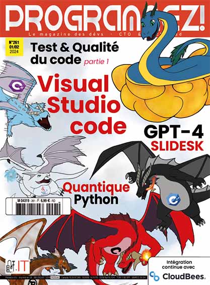 Dans programmez! papier #261 Paru le 26/01/2024 S'ABONNER Progressive Web Apps Reconsidérer les Progressive Web Apps (PWA) ? Lire la suite de Reconsidérer les Progressive Web Apps (PWA) ? Kubernetes Kubernetes 1.29 : Découvrez les nouveautés expliquées de manière visuelle Lire la suite de Kubernetes 1.29 : Découvrez les nouveautés expliquées de manière visuelle Qualité et tests Les défis de la qualité durable Lire la suite de Les défis de la qualité durable Les tests d’intégration réels avec Testcontainers Lire la suite de Les tests d’intégration réels avec Testcontainers Accélérer l’automatisation des tests par le DevOps Lire la suite de Accélérer l’automatisation des tests par le DevOps L’itération courte : la clé pour développer plus efficacement Lire la suite de L’itération courte : la clé pour développer plus efficacement La transition du Testing vers l’ingénierie de la qualité Lire la suite de La transition du Testing vers l’ingénierie de la qualité Rédiger du code, une véritable forme d’art Lire la suite de Rédiger du code, une véritable forme d’art Continuous Integration best practices : vision and reality Lire la suite de Continuous Integration best practices : vision and reality Intelligence artificielle Chronique de l’IA #3 Lire la suite de Chronique de l’IA #3 GPT-4 + Streaming de données = IA générative en temps réel Lire la suite de GPT-4 + Streaming de données = IA générative en temps réel Introduction au Machine Learning Craftsmanship Lire la suite de Introduction au Machine Learning Craftsmanship Hacking Hacker une brosse à dent intelligente Lire la suite de Hacker une brosse à dent intelligente Métier Développer : mais pas Seulement… Lire la suite de Développer : mais pas Seulement… Concours de « quéquettes » Lire la suite de Concours de « quéquettes » Outils SliDesk : votre compagnon pour vos présentations Lire la suite de SliDesk : votre compagnon pour vos présentations Visual Studio Code Tout savoir… ou presque sur Visual Studio Code Lire la suite de Tout savoir… ou presque sur Visual Studio Code tRPC Créer un projet tRPC Lire la suite de Créer un projet tRPC Python Les modules utiles en Python Lire la suite de Les modules utiles en Python Informatique quantique Le Calcul quantique est-il durable ? Lire la suite de Le Calcul quantique est-il durable ? Carrière Freelance dans l’IT : une réalité exigeante Lire la suite de Freelance dans l’IT : une réalité exigeante Sécurité Sécurisation de la chaîne d’approvisionnement logicielle : il faut outiller la première ligne Lire la suite de Sécurisation de la chaîne d’approvisionnement logicielle : il faut outiller la première ligne
