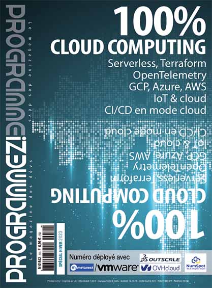Dans programmez! papier Hors série #10 Paru le 10/03/2023 S'ABONNER Cloud computing Cloud tu veux, cloud tu auras ! Lire la suite de Cloud tu veux, cloud tu auras ! NumSpot NumSpot : un cloud certifié et souverain Lire la suite de NumSpot : un cloud certifié et souverain Cloud souverain Cloud souverain : une étape essentielle dans le développement du Cloud Lire la suite de Cloud souverain : une étape essentielle dans le développement du Cloud DaaS Database en tant que service : quels sont les choix ? Lire la suite de Database en tant que service : quels sont les choix ? Gestion des ressources Cockpit : la plateforme de gestion des ressources sur le Cloud d’OUTSCALE Lire la suite de Cockpit : la plateforme de gestion des ressources sur le Cloud d’OUTSCALE Infrastructure Gérer facilement son infrastructure avec le provider Terraform OVHcloud 1 Lire la suite de Gérer facilement son infrastructure avec le provider Terraform OVHcloud Infrastructure As Code avec OVHcloud 1 Lire la suite de Infrastructure As Code avec OVHcloud Intelligence artificielle L’avenir de l’IA est-il dans le cloud ? Lire la suite de L’avenir de l’IA est-il dans le cloud ? Serverless Serverless : comment en tirer parti ? Lire la suite de Serverless : comment en tirer parti ? Les fonctions serverless, c’est pour tout le monde ! Lire la suite de Les fonctions serverless, c’est pour tout le monde ! Azure AD Développer, déployer et sécuriser les accès aux ressources grâce à Azure AD 1 Lire la suite de Développer, déployer et sécuriser les accès aux ressources grâce à Azure AD Sécurité Cloud : un Idem pour les gouverner tous Lire la suite de Cloud : un Idem pour les gouverner tous Solution applicative Une app de gestion EPUB pour les bibliothèques en mode cloud Lire la suite de Une app de gestion EPUB pour les bibliothèques en mode cloud Intégration continue Intégration et livraison continues sécurisées sur GCP Lire la suite de Intégration et livraison continues sécurisées sur GCP Observabilité Monitorer la santé des apps sans effort avec OpenTelemetry Lire la suite de Monitorer la santé des apps sans effort avec OpenTelemetry Azure IoT Développer un module Azure IoT Edge en .NET C# 1 Lire la suite de Développer un module Azure IoT Edge en .NET C# Configuration Google Cloud Armor et Cloud CDN : configuration et tips 1 Lire la suite de Google Cloud Armor et Cloud CDN : configuration et tips Coûts Estimez vos coûts Azure avec Infracost et Terraform Lire la suite de Estimez vos coûts Azure avec Infracost et Terraform Environnement Propulsez votre app Angular dans le cloud avec Code Space Lire la suite de Propulsez votre app Angular dans le cloud avec Code Space Spring Azure Spring Apps Entreprise 1 Lire la suite de Azure Spring Apps Entreprise Déploiement Cloud Seed : déployer plus rapidement avec GitLab Lire la suite de Cloud Seed : déployer plus rapidement avec GitLab