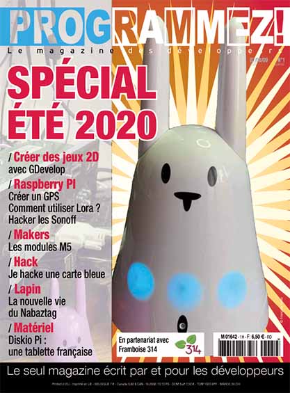 Dans programmez! papier Hors Série #1 Paru le 03/07/2020 S'ABONNER Matériel Sauvez votre lapin avec la tagtagtag ! Lire la suite de Sauvez votre lapin avec la tagtagtag ! Faire tourner son Nabaztag en .NET 1 Lire la suite de Faire tourner son Nabaztag en .NET TrueNas : API et Powershell le couple gagnant 1 Lire la suite de TrueNas : API et Powershell le couple gagnant Diskio Pi : un terminal tactile open source Lire la suite de Diskio Pi : un terminal tactile open source PYBStick Standard 26 série Programmez! : la carte multi-usage 1 Lire la suite de PYBStick Standard 26 série Programmez! : la carte multi-usage PybStick26 + écran TFT 2.4’’ Ili9341 Lire la suite de PybStick26 + écran TFT 2.4’’ Ili9341 Jeux Coder un classic 2D avec GDevelop 1 Lire la suite de Coder un classic 2D avec GDevelop Framboise 314 Passerelle et noeud LoRaWan 1 Lire la suite de Passerelle et noeud LoRaWan Programmer un module Sonoff Basic avec un Raspberry Pi 1 Lire la suite de Programmer un module Sonoff Basic avec un Raspberry Pi GPS USB avec le Raspberry Pi Lire la suite de GPS USB avec le Raspberry Pi Quille Un Mölkky connecté avec Node JS et du Bluetooth Low Energy 1 Lire la suite de Un Mölkky connecté avec Node JS et du Bluetooth Low Energy M5Stack Découverte du M5Stack 1 Lire la suite de Découverte du M5Stack IoT IoT : comment créer son IoT, le configurer et l’exploiter Lire la suite de IoT : comment créer son IoT, le configurer et l’exploiter Hack Hacker sa carte de crédit grâce à .NET Core IoT 1 Lire la suite de Hacker sa carte de crédit grâce à .NET Core IoT