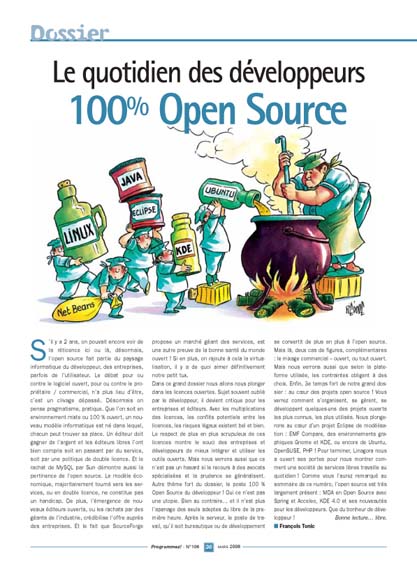 S’il y a 2 ans, on pouvait encore voir de la réticence ici ou là, désormais, l’open source fait partie du paysage informatique du développeur, des entreprises, parfois de l’utilisateur. Le débat pour ou contre le logiciel ouvert, pour ou contre le propriétaire / commercial, n’a plus lieu d’être, c’est un clivage dépassé. Désormais on pense pragmatisme, pratique. Que l’on soit en environnement mixte ou 100 % ouvert, un nouveau modèle informatique est né dans lequel, chacun peut trouver sa place. Un éditeur doit gagner de l’argent et les éditeurs libres l’ont bien compris soit en passant par du service, soit par une politique de double licence. Et le rachat de MySQL par Sun démontre aussi la pertinence de l’open source. Le modèle économique, majoritairement tourné vers les services, ou en double licence, ne constitue pas un handicap. De plus, l’émergence de nouveaux éditeurs ouverts, ou les rachats par des géants de l’industrie, crédibilise l’offre auprès des entreprises. Et le fait que SourceForge propose un marché géant des services, est une autre preuve de la bonne santé du monde ouvert ! Si en plus, on rajoute à cela la virtualisation, il y a de quoi aimer définitivement notre petit tux.