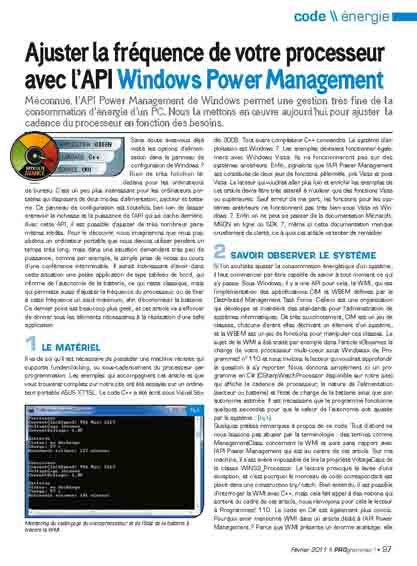 Méconnue, l’API Power Management de Windows permet une gestion très fine de la consommation d’énergie d’un PC. Nous la mettons en oeuvre aujourd’hui pour ajuster la cadence du processeur en fonction des besoins