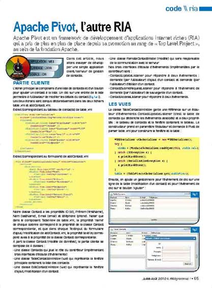 Apache Pivot est un framework de développement d’applications Internet riches (RIA) qui a pris de plus en plus de place depuis sa promotion au rang de « Top Level Project », au sein de la fondation Apache.