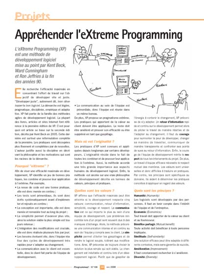 L'eXtreme Programming (XP) est une méthode de développement logiciel mise au point par Kent Beck, Ward Cunningham et Ron Jeffries à la fin des années 90.