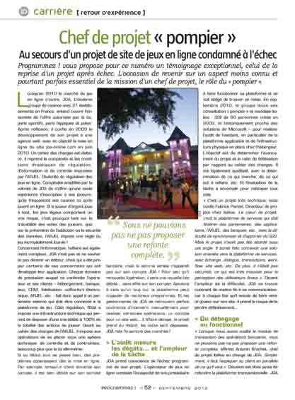 Programmez ! vous propose pour ce numéro un témoignage exceptionnel, celui de la reprise d'un projet après échec. L'occasion de revenir sur un aspect moins connu et pourtant parfois essentiel de la mission d'un chef de projet, le rôle du « pompier ».