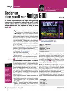 Cet article est le quatrième article d’une série de cinq consacrés à la programmation d’un one pixel sine scroll sur Amiga, un effet très utilisé par les coders de démos et autres cracktros durant un temps. Un exemple, dans cette intro, aussi magnifique que vintage, du groupe Miracle.