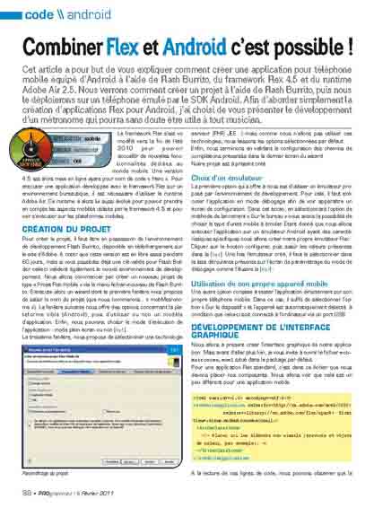 Cet article a pour but de vous expliquer comment créer une application pour téléphone mobile équipé d’Android à l’aide de Flash Burrito, du framework Flex 4.5 et du runtime Adobe Air 2.5. Nous verrons comment créer un projet à l’aide de Flash Burrito, puis nous le déploierons sur un téléphone émulé par le SDK Android. Afin d’aborder simplement la création d’applications Flex pour Android, j’ai choisi de vous présenter le développement d’un métronome qui pourra sans doute être utile à tout musicien.
