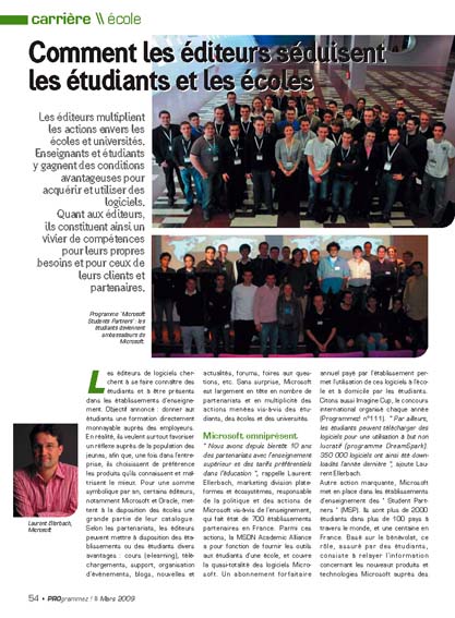 Les éditeurs de logiciels cherchent à se faire connaître des étudiants et à être présents dans les établissements d’enseignement. Objectif annoncé : donner aux étudiants une formation directement monnayable auprès des employeurs. En réalité, ils veulent surtout favoriser un réflexe auprès de la population des jeunes, afin que, une fois dans l’entreprise, ils choisissent de préférence les produits qu’ils connaissent et maîtrisent le mieux. Pour une somme symbolique par an, certains éditeurs,notamment Microsoft et Oracle, mettent à la disposition des écoles une grande partie de leur catalogue. Selon les partenariats, les éditeurs peuvent mettre à disposition des établissements ou des étudiants divers avantages : cours (e-learning), téléchargements, support, organisation d’événements, blogs, nouvelles et actualités, forums, foires aux questions, etc. Sans surprise, Microsoft est largement en tête en nombre de partenariats et en multiplicité des actions menées vis-à-vis des étudiants, des écoles et des universités.