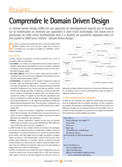 Le Domain-driven design (DDD) est une approche du développement logiciel qui se focalise sur la modélisation du domaine par opposition à celle d’une technologie. Eric Evans est le précurseur de cette vision architecturale dont il a dessiné les premières esquisses dans un livre publié en 2003 sous l’intitulé " Domain Driven Design ". Depuis, la plupart des grands penseurs du monde logiciel (dont
