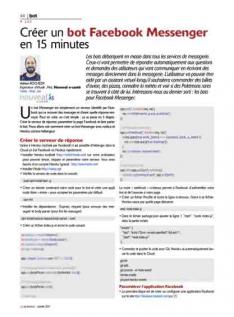 Les bots débarquent en masse dans tous les services de messagerie. Ceux-ci vont permettre de répondre automatiquement aux questions et demandes des utilisateurs qui vont communiquer en écrivant des messages directement dans la messagerie. L’utilisateur va pouvoir être aidé par un assistant virtuel lorsqu’il souhaitera commander des billets d’avion, des pizzas, connaître la météo et voir si des Pokémons rares se trouvent à côté de lui. Intéressons-nous au dernier sorti : les bots pour Facebook Messenger.