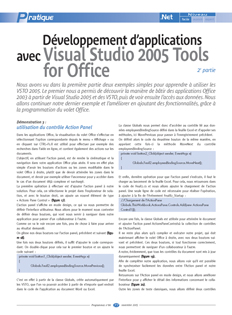 Développement d'applications avec Visual Studio 2005 Tools for Ofiice (2ème partie)