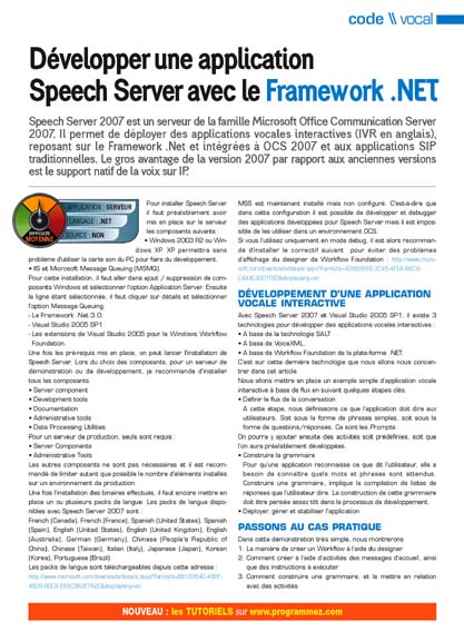 Speech Server 2007 est un serveur de la famille Microsoft Office Communication Server 2007. Il permet de déployer des applications vocales interactives (IVR en anglais), reposant sur le Framework .Net et intégrées à OCS 2007 et aux applications SIP traditionnelles. Le gros avantage de la version 2007 par rapport aux anciennes versions est le support natif de la voix sur IP.