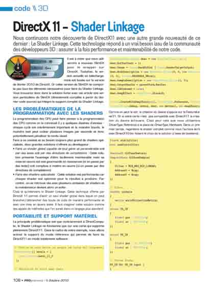 Nous continuons notre découverte de DirectX11 avec une autre grande nouveauté de ce dernier : Le Shader Linkage. Cette technologie répond à un vrai besoin issu de la communauté des développeurs 3D : assure à la fois performance et maintenabilité de notre code.