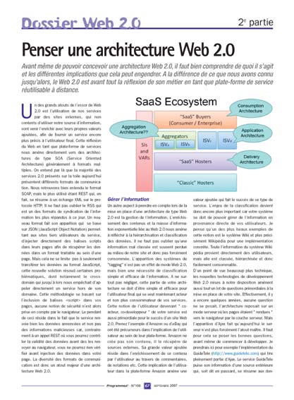 Avant même de pouvoir concevoir une architecture Web 2.0, il faut bien comprendre de quoi il s’agit et les différentes implications que cela peut engendrer. A la différence de ce que nous avons connu jusqu’alors, le Web 2.0 est avant tout la réflexion de son métier en tant que plate-forme de service réutilisable à distance.