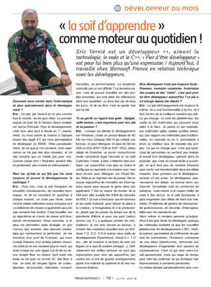 Eric Vernié est un développeur ++, aimant la technologie, le code et le C++. « Fier d’être développeur » est pour lui bien plus qu’une expression ! Aujourd’hui, il travaille chez Microsoft France en relation technique avec les développeurs.