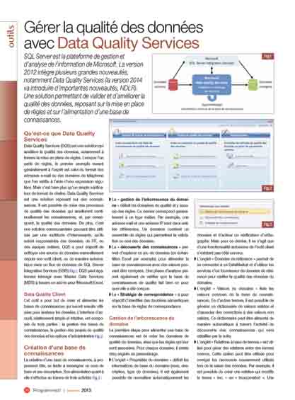 SQL Server est la plateforme de gestion et d’analyse de l’information de Microsoft. La version 2012 intègre plusieurs grandes nouveautés, notamment Data Quality Services (la version 2014 va introduire d’importantes nouveautés, NDLR). Une solution permettant de valider et d’améliorer la qualité des données, reposant sur la mise en place de règles et sur l’alimentation d’une base de connaissances.