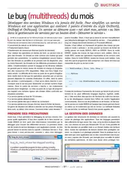 Développer des services Windows n’a jamais été facile. Pour simplifier, un service Windows est une application qui contient 3 points d’entrée du style OnStart(), OnStop() et OnPause(). Un service se démarre avec « net start mon_service » ou bien dans le gestionnaire de services par un bouton droit « Démarrer le service ».
