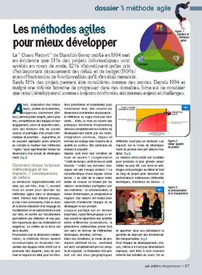 C’est-à-dire que c’est à lui d’évaluer la difficulté de la fonction à développer et surtout de donner un temps de développement. Ces contraintes et libertés obligent à avoir des équipes relativement homogènes et à encadrer les nouveaux venus. Une bonne maîtrise des technologies est également indispensable. Le développeur agile est une réalité même si cela se limite essentiellement aux développements en équipe car pour le développeur indépendant ou occasionnel, l’agilité aura peu d’influence, sauf peut être sur son organisation et la manière de découper un développement. Dans ce dossier nous allons explorer les méandres de Scrum, de XP et voir comment se déroule une journée type d’un développeur agile, sans oublier les meilleurs conseils pour bien démarrer dans l’agilité.