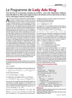 Lady Ada King, est le personnage romantique par excellence : jeune, belle, indépendante, intelligente, unique fille légitime du célèbre poète anglais lord Byron, elle décédera comme lui dans la fleur de l’âge à 36 ans. L’informatique moderne la rendra célèbre.