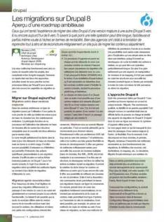 Aperçu d’une roadmap ambitieuse Ceux qui ont tenté l’expérience de migrer des sites Drupal d’une version majeure à une autre (Drupal 5 vers 6 ou encore aujourd’hui de 6 vers 7) savent à quel point une telle opération peut être longue, fastidieuse et parfois même vouée à l’échec en termes de rentabilité. Bien des agences ont cédé à la tentation de reprendre tout à zéro et de reconstruire intégralement un site puis de migrer les contenus séparément.