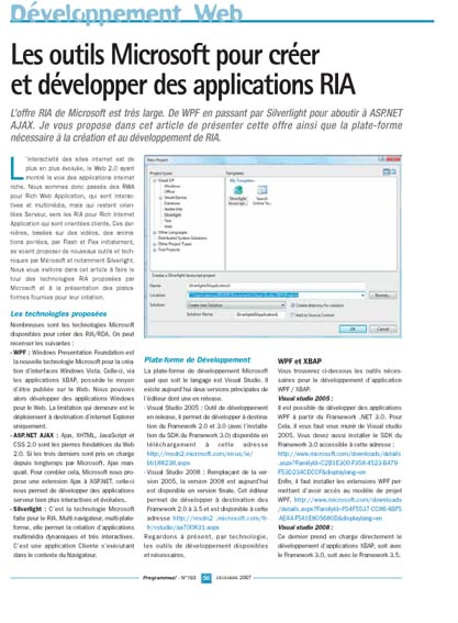 L’offre RIA de Microsoft est très large. De WPF en passant par Silverlight pour aboutir à ASP.NET AJAX. Je vous propose dans cet article de présenter cette offre ainsi que la plate-forme nécessaire à la création et au développement de RIA.