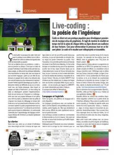 Coder en direct est une pratique populaire pour développeurs passionnés de musique et/ou de graphisme. Il s’agit de montrer le résultat en temps réel de la saisie de chaque lettre ou ligne devant une audience de tous horizons. Ceci pour démocratiser le processus tout en se faisant plaisir. Le code et le résultat sont vidéoprojetés et écoutables.