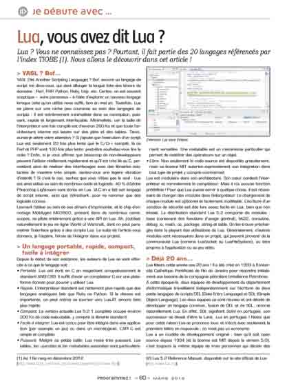 Lua ? Vous ne connaissez pas ? Pourtant, il fait partie des 20 langages référencés par l’index TIOBE (1). Nous allons le découvrir dans cet article !