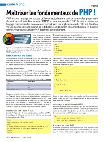PHP est un langage de scripts utilisé principalement pour produire des pages web dynamiques à l'aide d'un serveur HTTP. Disposant de plus de 3 000 fonctions natives, ce langage couvre tous les domaines en rapport avec les applications web. PHP est distribué via une licence libre qui permet sa rediffusion, son utilisation et sa modification. En d'autres termes, vous pouvez utiliser PHP librement et gratuitement.