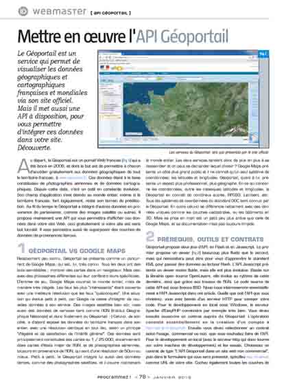 Au départ, le Géoportail est un portail Web français [Fig.1] qui a été lancé en 2006, et dont le but est de permettre à chacun d'accéder gratuitement aux données géographiques de tout le territoire français, à www.geoportail.fr. Ces données étant à la base constituées de photographies aériennes et de données cartographiques. Depuis cette date, c'est un outil en constante évolution. Son champ d'application s'est étendu au monde entier, même si le territoire français, fort logiquement, reste son terrain de prédilection. Au fil du temps le Géoportail a intégré d'autres données en provenance de partenaires, comme des images satellite ou autres. Il propose maintenant une API qui vous permettra d'afficher ces données dans votre site Web, ceci gratuitement si votre site est sans but lucratif. Il vous permettra aussi de superposer des couches de données de provenances tierces.