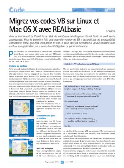 Pour conservez vos connaissances et valoriser votre savoir-faire Visual Basic, vous pouvez migrer votre code vers REALbasic (RB), outil de développement cross plate-forme et compiler vos applications pour Linux, Mac OS X et Windows, y compris Windows 98, NT, Me, 2000, XP et Vista.