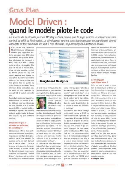 Il est certain que l’approche Model Driven, ou pilotage par modèle, peut apparaître abstraite au regard des différentes déclinaisons MD que l’on trouve. Les principales se nomment : MDA, MDD, MDT, MDE. La base reste la même : le modèle. Dès que l’on fait de la modélisation, d’une certaine manière, on fait du Model Driven. Ce MD est censé apporter une rigueur de conception à partir d’un modèle défini et c’est sur ce modèle, que l’on génère tout ou partie du code, d’une couche métier, d’une interface, d’une application, etc. On peut en effet appliquer le concept MD à tout et n’importe quoi. Cependant, après une vague d’enthousiasme il y a environ 3 ans, les éditeurs puis les utilisateurs se sont calmés. Car si sur le papier le MD, et tout particulièrement MDA, répond à des besoins réels et séduit, inutile de foncer tête baissée. Il y a un problème de choix.