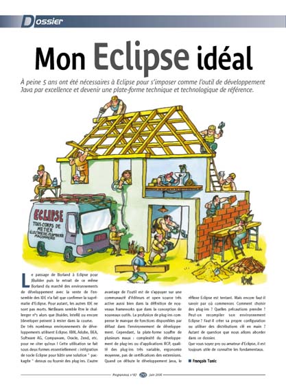Le passage de Borland à Eclipse pour JBuilder puis le retrait de ce même Borland du marché des environnements de développement avec la vente de l’ensemble des IDE n’a fait que confirmer la suprématie d’Eclipse. Pour autant, les autres IDE ne sont pas morts. NetBeans semble être le challenger n°1 alors que Jbuider, IntelliJ ou encore Jdeveloper peinent à rester dans la course. De très nombreux environnements de développements utilisent Eclipse. IBM, Adobe, BEA, Software AG, Compuware, Oracle, Zend, etc. pour ne citer qu’eux ! Cette utilisation se fait sous deux formes essentiellement : intégration de socle Eclipse pour bâtir une solution " packagée " dessus ou fournir des plug-ins. L’autre avantage de l’outil est de s’appuyer sur une communauté d’éditeurs et open source très active aussi bien dans la définition de nouveaux frameworks que dans la conception de nouveaux outils. La profusion de plug-ins compense le manque de fonctions disponibles par défaut dans l’environnement de développement. Cependant, la plate-forme souffre de plusieurs maux : complexité du développement de plug-ins ou d’applications RCP, qualité des plug-ins très variable, ergonomie moyenne, pas de certifications des extensions. Quand on débute le développement Java, le réflexe Eclipse est tentant. Mais encore faut-il savoir par où commencer. Comment choisir des plug-ins ? Quelles précautions prendre ? Peut-on recompiler son environnement Eclipse ? Faut-il créer sa propre configuration ou utiliser des distributions clé en main ? Autant de question que nous allons aborder dans ce dossier. Que vous soyez pro ou amateur d’Eclipse, il est toujours utile de connaître les fondamentaux.